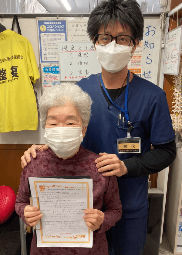 そんな時、職場の人が大師接骨院を紹介してくださいました。とても親切で、安心して受診することができました。